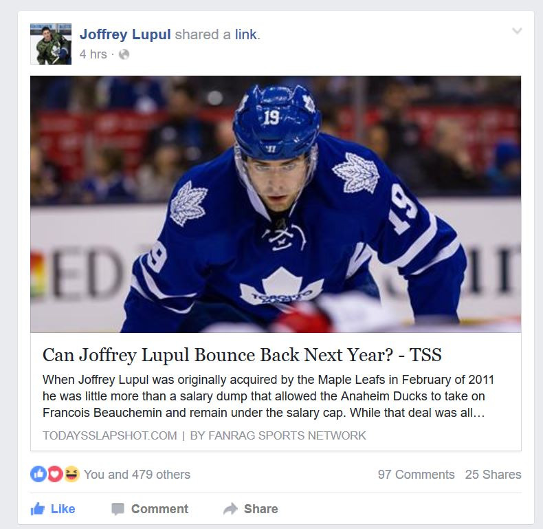 Even Joffrey Lupul himself liked my work. It's the greatest testimonial I'll ever receive. No offense to the other 479 people (and counting!) there, some of whom literally loved the article.